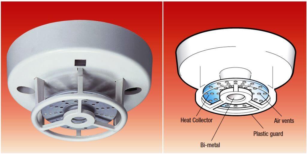 Heat detectors activate when the surrounding temperature exceeds a set limit or rises rapidly within a short time.